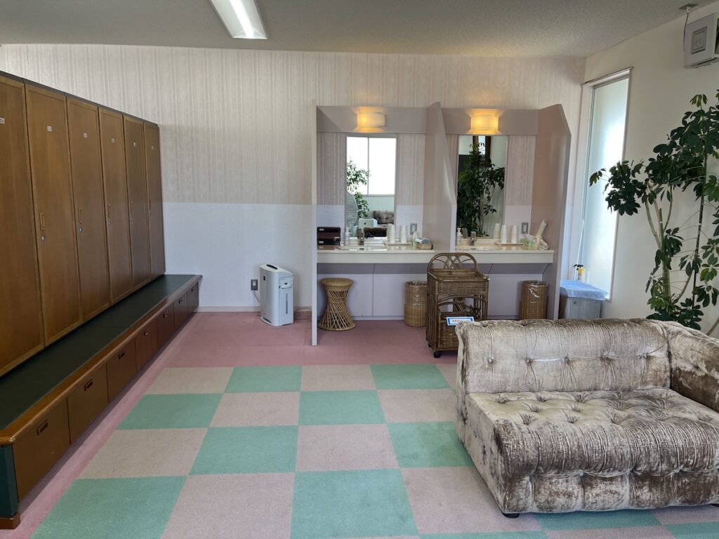 女子ロッカーは2階(浴場は1階)にあるのですが、一角にドレッサーやソファもあって身支度を整えやすいです。