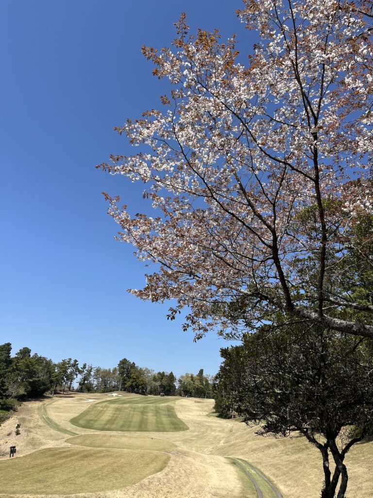 ラウンドした4月初めは桜が満開から山桜は散りはじめていて、ひらひらと桜吹雪が舞う中とても風情のあるものでした。春は天気が不安定ですが、ちょうどピーカンの天気、お花見ゴルフを楽しめました!